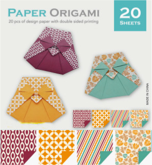 Blocco Carta Origami 80gr. 20 fogli di carta specifica per origami, grammatura 80 gr/mq formato cm. 15x15, cinque fogli per fantasia con retro tinta unita. Compreso di istruzioni per realizzare il modello sulla copertina.