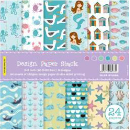 Carta di qualità. grammatura 180 gr/mq. 24 fogli stampa su due lati, (grandezza foglio cm. 20,4x20,4), sei fantasie quattro fogli fronte/retro per fantasia.