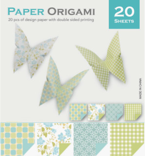 Blocco Carta Origami 80gr. 20 fogli di carta specifica per origami, grammatura 80 gr/mq formato cm. 15x15, cinque fogli per fantasia con retro tinta unita. Compreso di istruzioni per realizzare il modello sulla copertina.