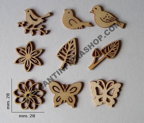 Decori in legno multistrato tagliate a laser, confezione da 9 pezzi.