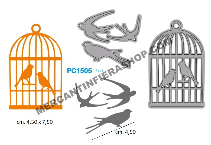 Fustella SottileGabbia Uccellini Set 4 fustelle metalliche sottili Wiler, tipo thinlits compatibile con Sizzix Big Shot, Big Shot Plus e altre macchine di taglio. Adatta per il taglio di carta, cartoncino, lamina alluminio, eva foam e gomma crepla.