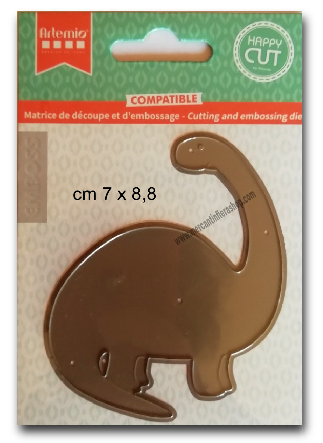 Fustella Sottile Dinosauro Fustella metallica sottile Artemio, tipo thinlits compatibile con Sizzix Big Shot, Big Shot Plus e altre macchine di taglio. Adatta per il taglio di carta, cartoncino, lamina alluminio, eva foam o gomma crepla. Grazie alle fustelle sottili tipo thinlits puoi tagliare forme estremamente dettagliate che userai per il tuo Cardmaking o scrapbooking. Quando utilizzi le fustelle sottili con la Big Shot ricordati di utilizzare l'adattatore verde. Grazie a queste fustelle potrai realizzare dalbiglietto d'auguriper qualunque occasione alla partecipazione di nozze. Insomma basta solo un po' dicarta tinta unita o stampata,colla e biadesivo , fustelle e fantasia per creare qualcosa di assolutamente unico semplicemente perchè l'hai realizzato tu! Se vuoi vedere un video come utilizzare le fustelle vai alla pagina tutorial del sito oppureclicca qui
