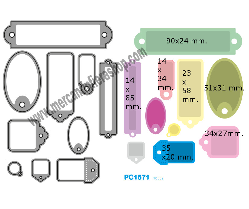 Fustelle Sottili Etichette Set 10 fustelle sottili Wiler, tipo thinlits compatibile con Big Shot Sizzix e altre macchine di taglio. Adatta per il taglio di carta, cartoncino, lamina alluminio ed eva foam.