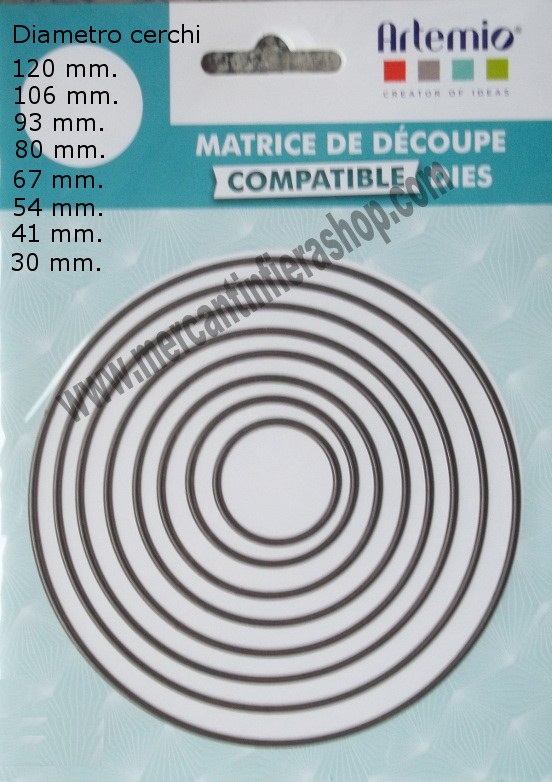 diametro cerchi in mm. : 120 - 106 - 93 - 80 - 67 - 54 - 41 - 30