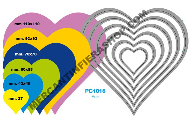 Fustella SottileCuori Set 6 fustelle metalliche sottili Wiler, tipo framelits compatibile con Sizzix Big Shot, Big Shot Plus e altre macchine di taglio. Adatta per il taglio di carta, cartoncino, lamina alluminio, eva foam e gomma crepla.
