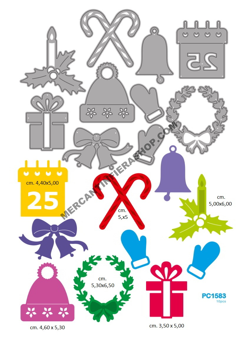 Fustelle SottiliNatale Set 10 fustelle tema natale Wiler, tipo thinlits compatibile con Sizzix Big Shot, Big Shot Plus e altre macchine di taglio. Adatta per il taglio di carta, cartoncino, lamina alluminio, eva foam e gomma crepla.
