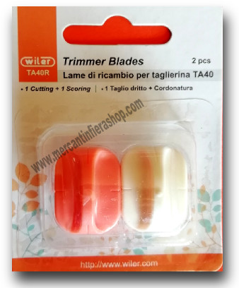 Lame taglierina TA40Confezione di lame di ricambio per taglierina TA40. Contiene 1 lama per taglio dritto e 1 per cordonatura.