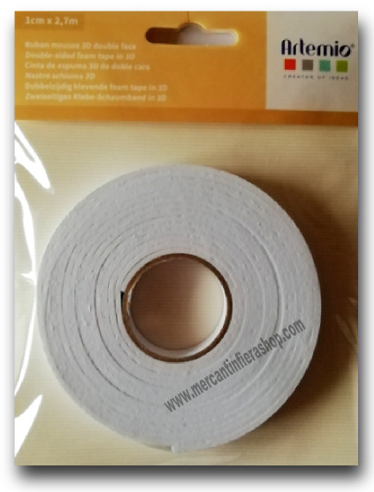 Nastro Biadesivo 3DRotolo biadesivo 1cm x 2,7 m. Utilissimo per dare spessore e tridimensionalità ai progetti