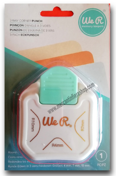 3-way corner punch WeR Memory Keepers con 3 ingressi diversi per arrotondare l'angolo in 3 diverse misure.