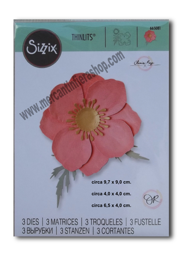 Fustella Sizzix Thinlits Icelandic Poppy Thinlits Sizzix 3 pezzi per Big Shot, Big Shot Plus e altre macchine di taglio. Adatta per il taglio di carta, cartoncino, lamina alluminio ed eva foam.