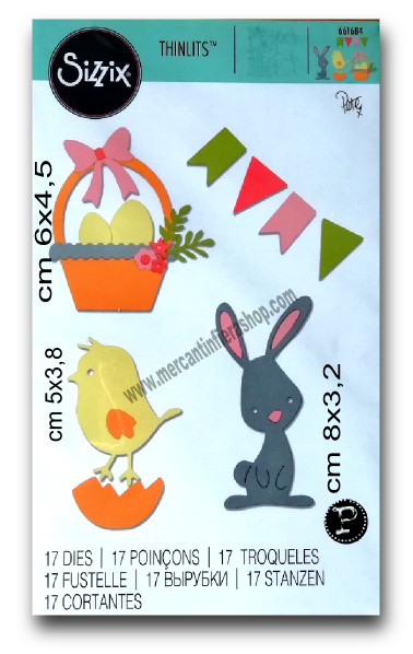 Fustella Sizzix Thinlits Pasqua Set di 17 fustelle sottili per SideKick, Big Shot, Big Shot Plus e altre macchine di taglio. Adatta per il taglio di carta, cartoncino, lamina alluminio ed eva foam.
