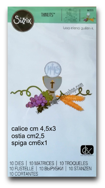 Sizzix Thinlits Prima Comunione Set di 10 fustelle metalliche per Sidekick, Big Shot, Big Shot Plus e altre macchine di taglio. Adatta per il taglio di carta, cartoncino, lamina alluminio ed eva foam. Misura calice cm.4,5x3 Misura spiga cm.5,8x1