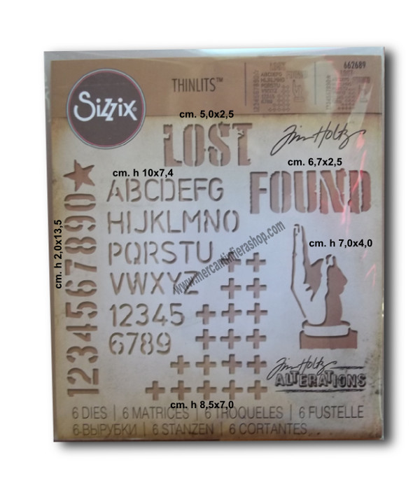 Thinlits Sizzix by Tim Holtz Set 6 fustelle sottili per Big Shot Sizzix e altre macchine di taglio. Ideali per creare stencil e particolarmente utili a chi utilizza la tecnica mixed media. Adatta per il taglio di carta, cartoncino, lamina alluminio ed eva foam.