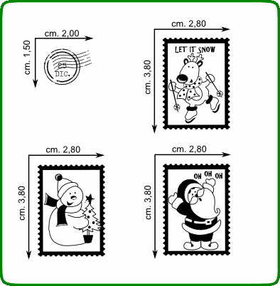 Timbri decorativi in polimero o clear stamps. Produzione propria. Non autoadesivi da utilizzare con supporto in plexiglass trasparente dotato di biadesivo cod. TT01. Facili da utilizzare poichè il supporto trasparente offre il vantaggio di vedere con precisione dove si sta stampando. Terninato l'utilizzo staccare il timbro dal supporto e lavare semplicemente sotto l'acqua fredda.