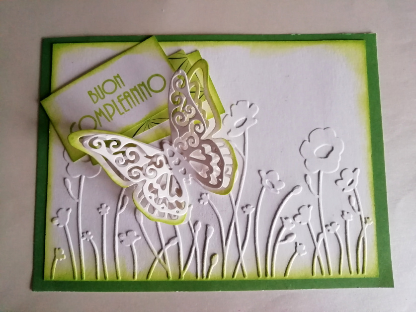 Biglietto auguri realizzato con fustelle Big Shot, folder embossing sizzix e timbri in polimero