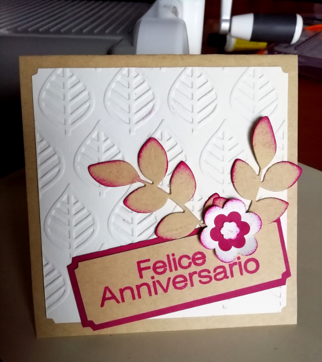Biglietto auguri realizzato con fustelle Big Shot, folder embossing sizzix e timbri in polimero