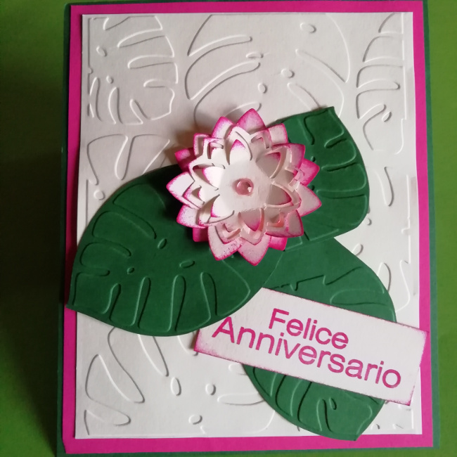 Biglietto d'auguri realizzato con perforatori per la carta, embossing folder per big shot sizzix e timbri