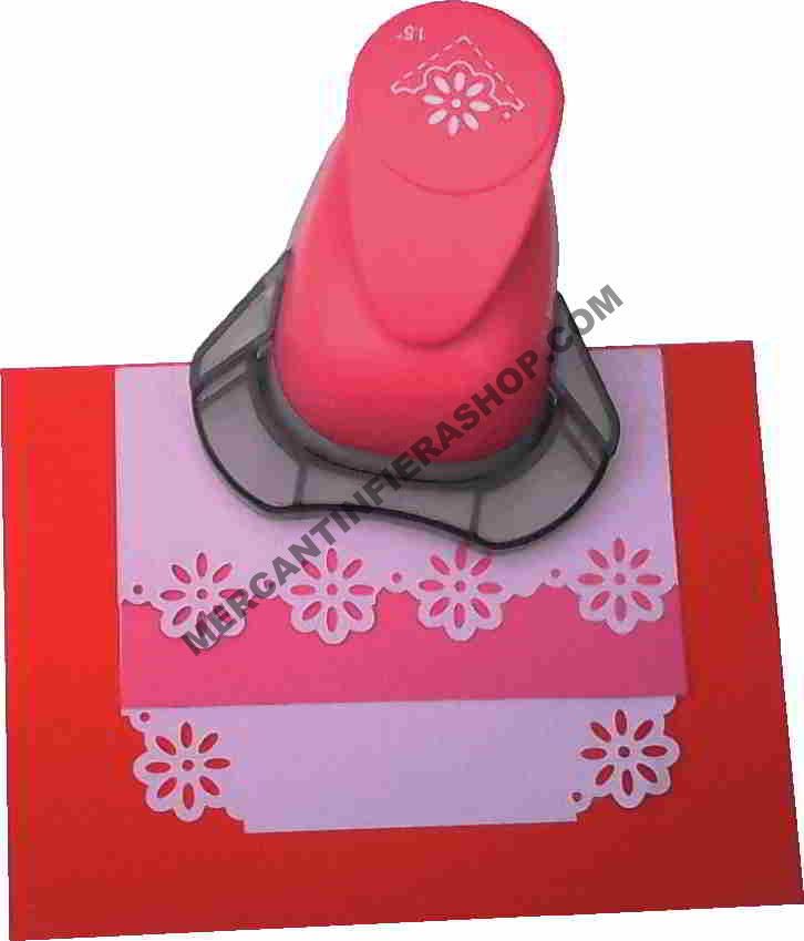 Perforatore Angolo Margherita misura big Perforatore per decorare l'angolo del vostro cartoncino. Togliendo la base estraibile è possibile ottenere un bordo lineare ma anche circolare. Grammatura ideale 80-180gr. guarda allegati nel dettaglio per le istruzioni.