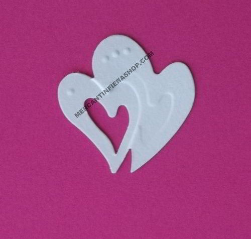 Perforatore Cuore Doppio Perforatrici effetto rilievo con sistema a leva (misura circa 32mm.) Adatto per cartoncino con grammatura fra 160-220 gr/mq. Questa perforatrice taglia la sagoma e contemporaneamente la embossa.