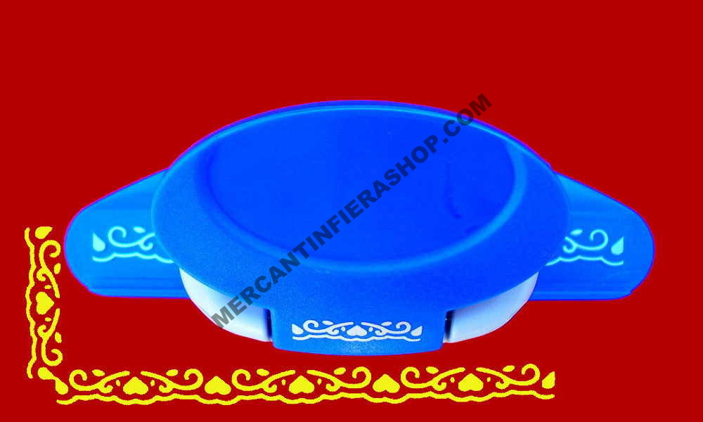 Perforatrice per realizzare una bordatura continua anche sui quattro lati del cartoncino. Il disegno sulla base d'appoggio esterno consente di realizzare una decorazione sul bordo precisa, senza errori di sovrapposizione, clicca sulla graffetta (allegati) per vedere le istruzioni.