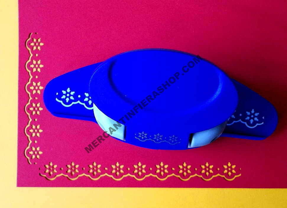 Perforatrice per realizzare una bordatura continua anche sui quattro lati del cartoncino. Il disegno sulla base d'appoggio esterno consente di realizzare una decorazione sul bordo precisa, senza errori di sovrapposizione, clicca sulla graffetta (allegati) per vedere le istruzioni.