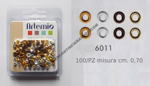 Rivetti Tondi Colore Oro100 rivetti decorativi tondi marca Artemio. Misura foro mm. 3,2 da inserire con la rivettatrice cod. RIV02