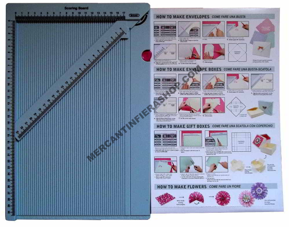 Tavola rigida che permette di realizzare buste, buste spessorate e scatoline con coperchio tutte di molteplici misure. Utilizzata anche per cordonare e piegare biglietti. Se vuoi aggiungi sotto la fustella per stondare gli angoli.